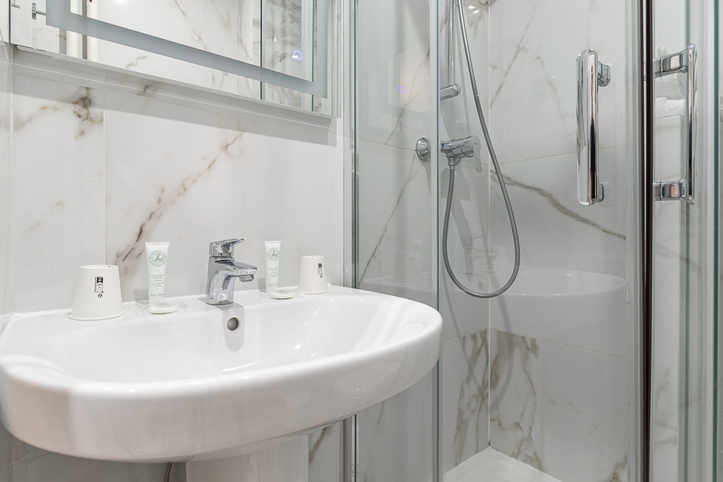 Les chambres sont équipées de WC, Internet Wifi (payant)Téléphone Direct, service réveil, bureau, double vitrage, chauffage individuel, miroir en pied et Télévision câblée. Fer et planche à repasser, bouilloire, kit de couture, sèche cheveux et service thé/café sont disponibles sur simple demande. elles bénéficient toutes d'une salle de bains privative avec baignoire ou douche et équipées de produits d’accueil (savon, gel douche, shampooing) et d’une prise rasoir.